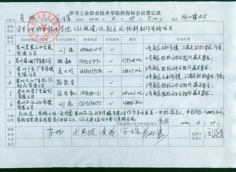 畢節(jié)工業(yè)職業(yè)技術(shù)學(xué)院 VIS視覺識別系統(tǒng)物料制作采購中標(biāo)公告