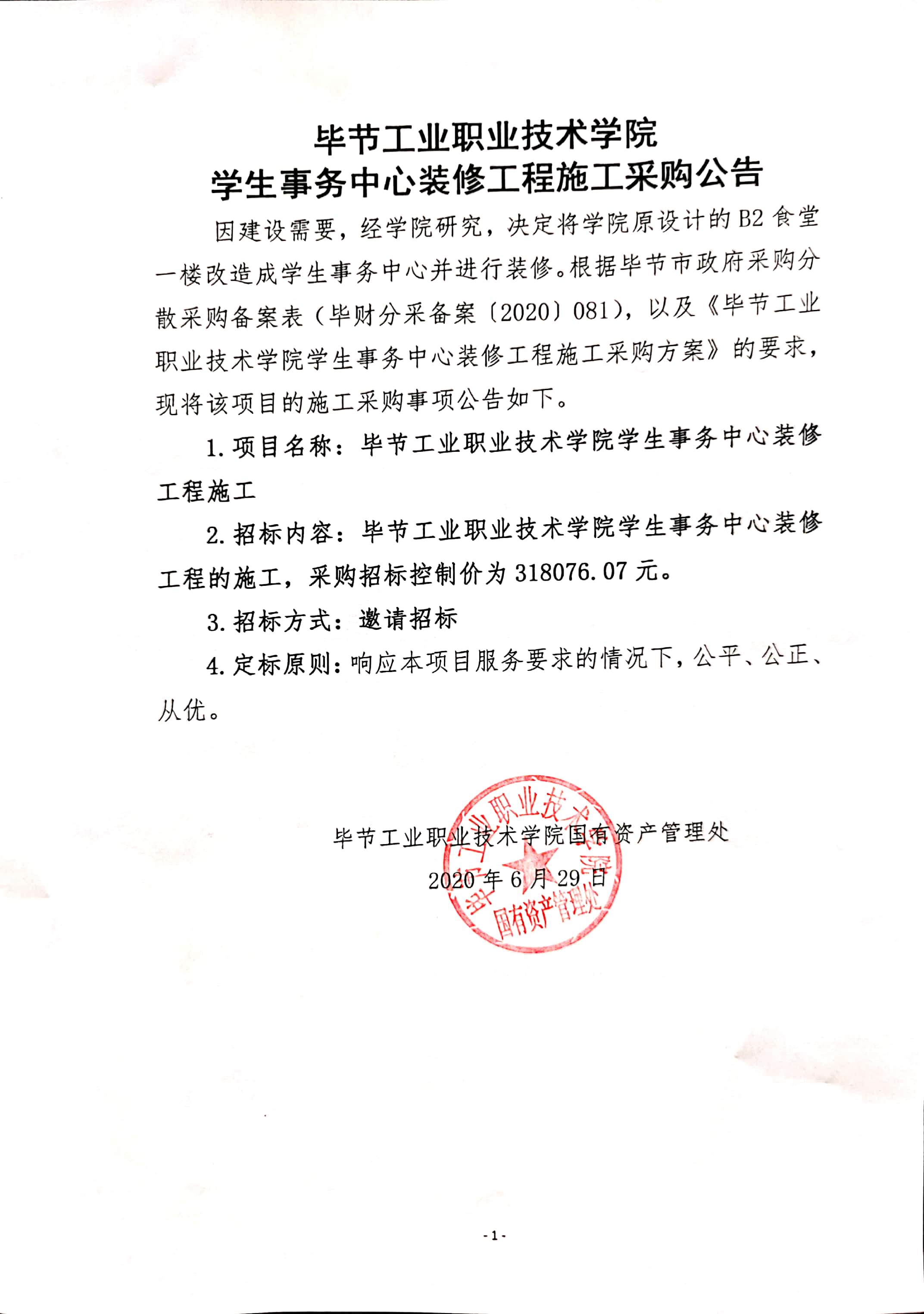 畢節(jié)工業(yè)職業(yè)技術(shù)學(xué)院學(xué)生事務(wù)中心裝修工程施工采購(gòu)公告