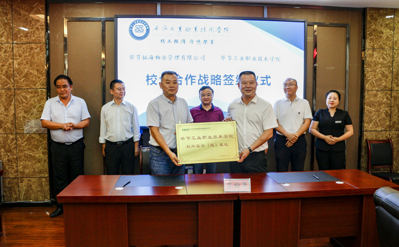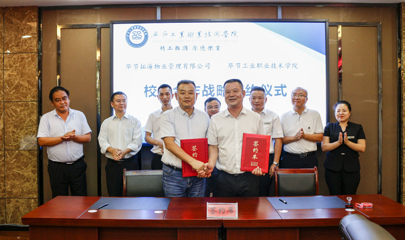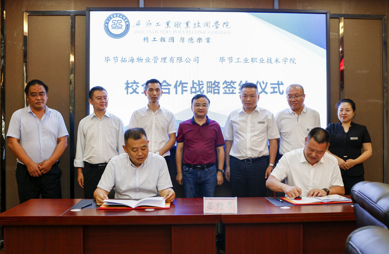 為深入貫徹落實習近平總書記對技能人才工作重要指示精神,切實做好新時代技能人才工作,9月3日,畢節(jié)拓海物業(yè)管理有限公司與畢節(jié)工業(yè)職業(yè)技術學院校企合作戰(zhàn)略協議簽訂儀式在學院同心樓三樓會議室舉行。畢節(jié)拓海物業(yè)管理有限公司總經理楊月強、常務副總經理邱鋒一行,學院黨委書記李涌,黨委副書記、院長邱國援,黨委委員、副院長吳家文、相關部門負責人及教師代表出席儀式。簽約儀式由邱國援主持。