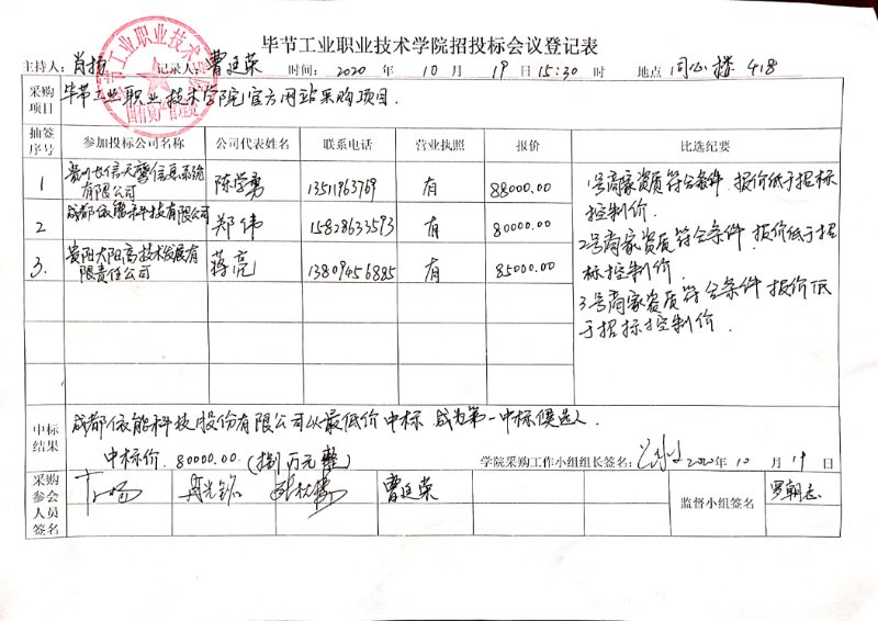 畢節(jié)工業(yè)職業(yè)技術(shù)學院官方網(wǎng)站中標公告
