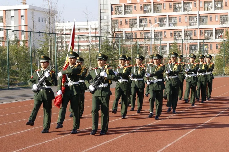 各系部方陣順序經(jīng)過觀禮臺(tái)接受檢閱