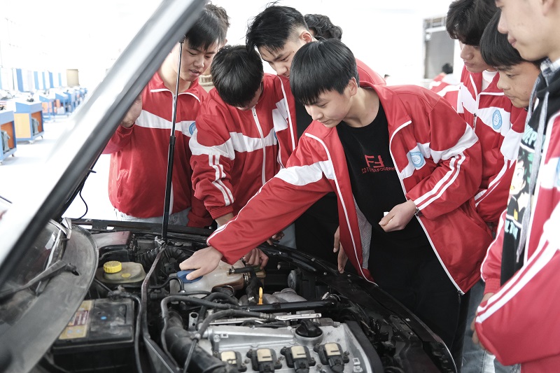 汽修專業(yè)學(xué)生上課現(xiàn)場