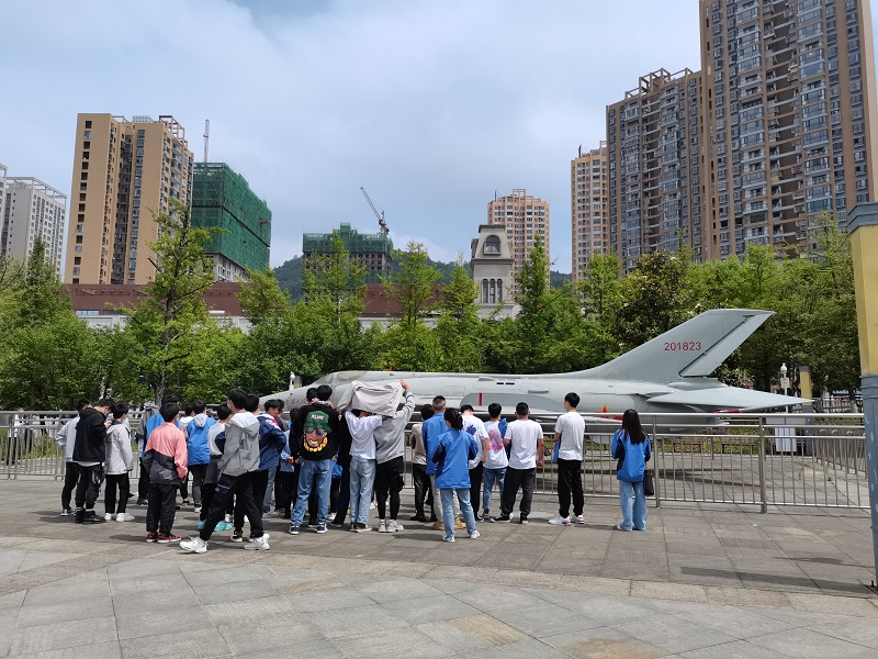 隨后,同學(xué)們又參觀了中國研制的單座雙發(fā)動(dòng)機(jī)超音速強(qiáng)5-強(qiáng)擊機(jī),通過聽取解說和近距離接觸,對(duì)中國強(qiáng)擊機(jī)的發(fā)展史有了一定的了解收獲。