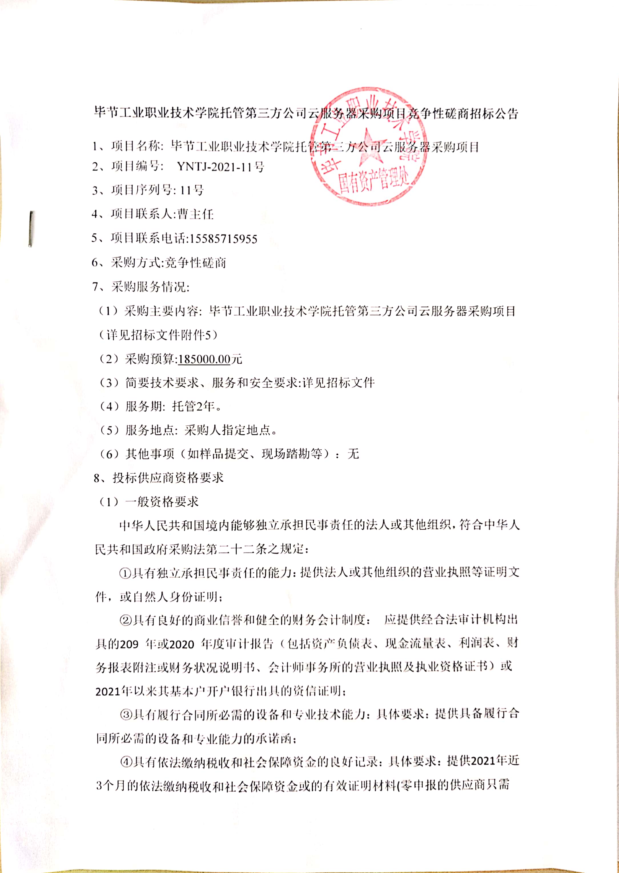 畢節(jié)工業(yè)職業(yè)技術(shù)學(xué)院托管第三方公司云服務(wù)器采購(gòu)項(xiàng)目競(jìng)爭(zhēng)性磋商招標(biāo)公告