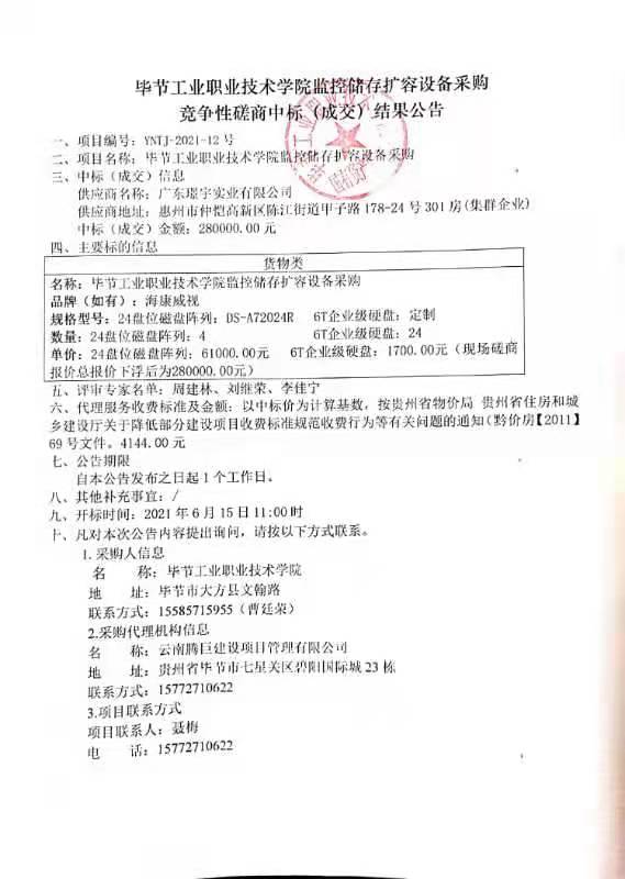 畢節(jié)工業(yè)職業(yè)技術(shù)學(xué)院監(jiān)控儲(chǔ)存擴(kuò)容設(shè)備采購(gòu)成交公告