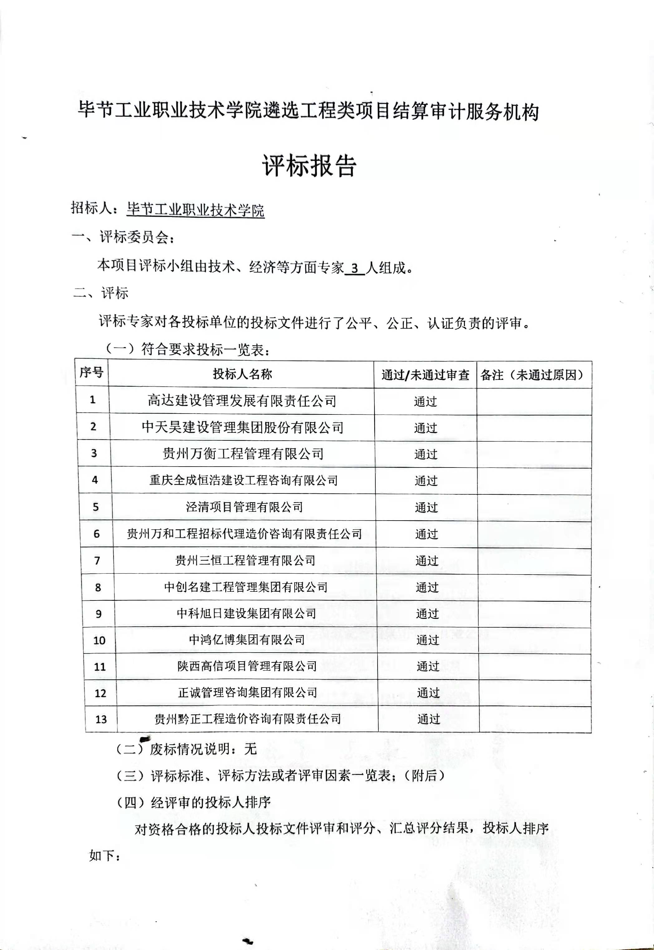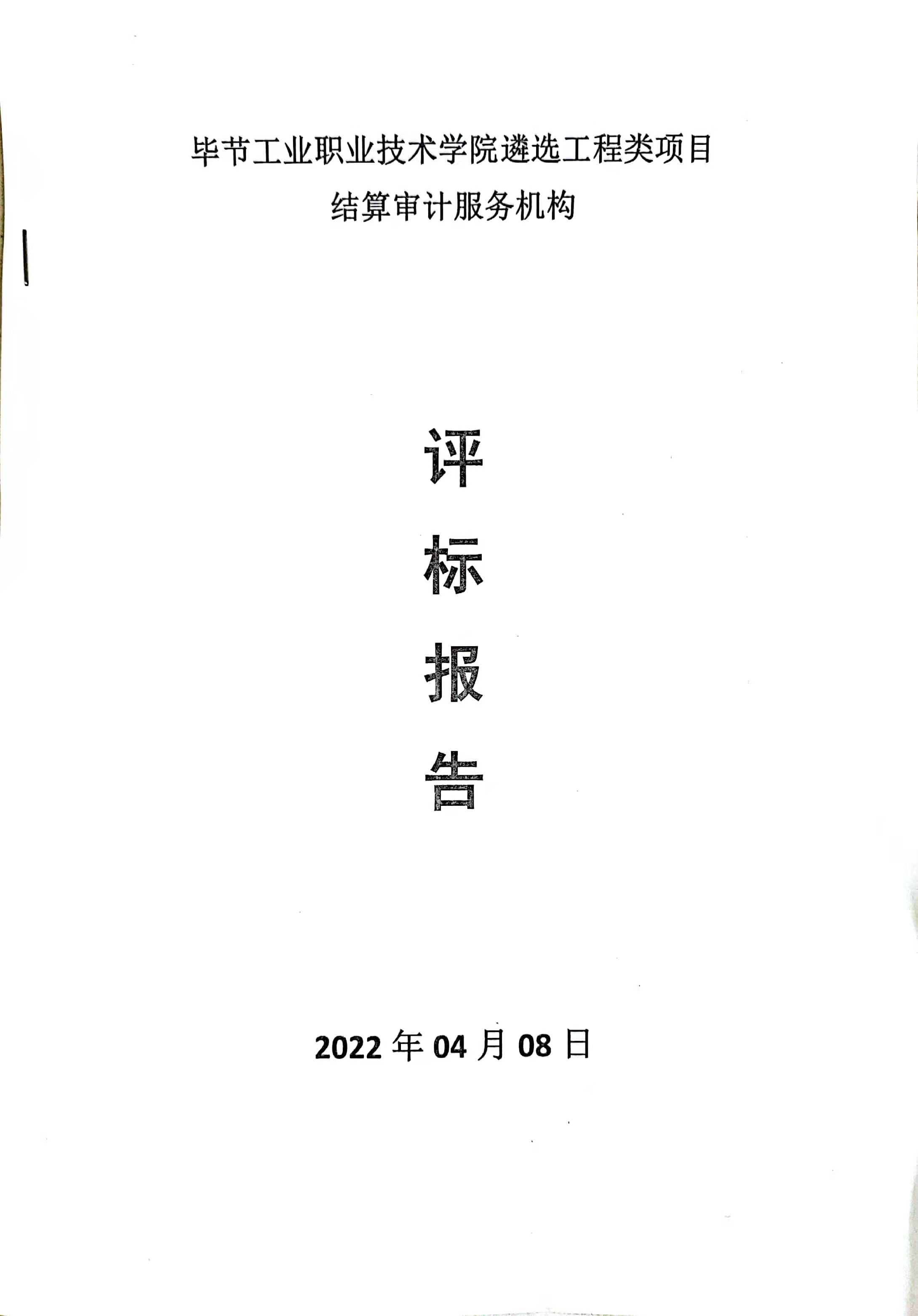 畢節(jié)工業(yè)職業(yè)技術(shù)學(xué)院遴選工程類項(xiàng)目結(jié)算審計(jì)服務(wù)機(jī)構(gòu)評價報(bào)告