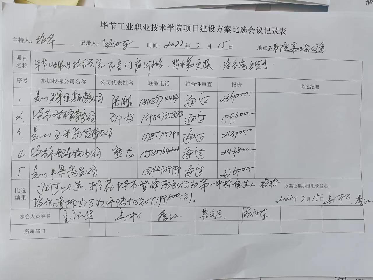 畢節(jié)工業(yè)職業(yè)技術學院宿舍門窗維修 背水箱更換 防水補漏等零星維修詢價結果公示