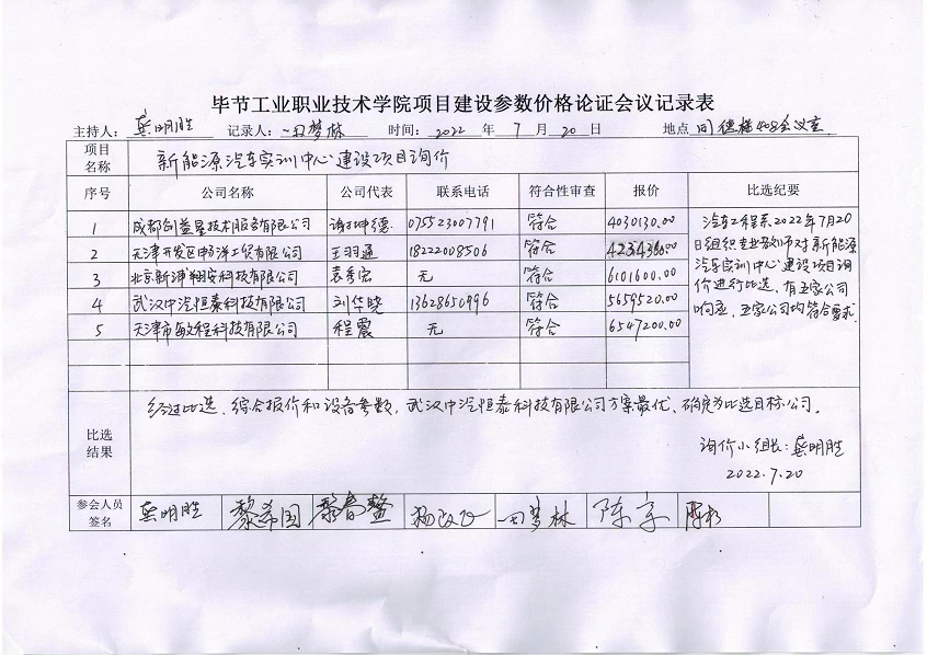 新能源汽車實訓(xùn)中心建設(shè)項目詢價-結(jié)果公示