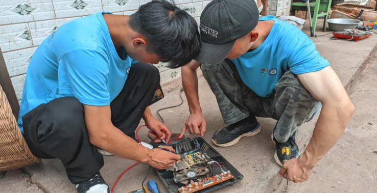圖為實(shí)踐小隊(duì)隊(duì)員為村民維修電磁爐
