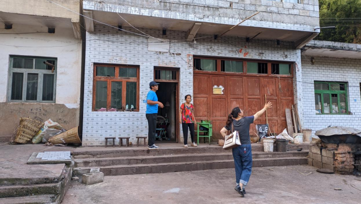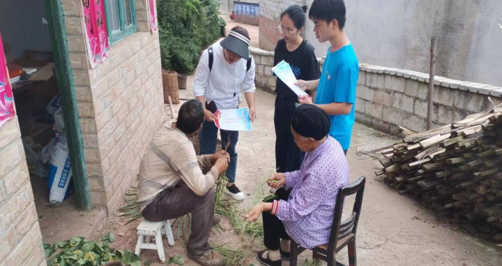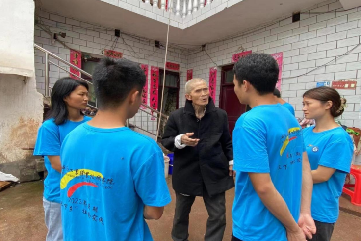 圖為指導(dǎo)老師帶著實(shí)踐小分隊(duì)對村民的住戶進(jìn)行考察