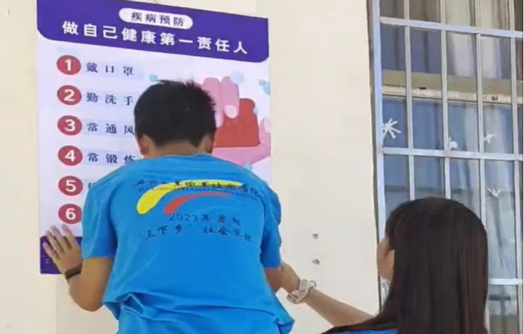 圖為實(shí)踐隊(duì)員張貼健康海報