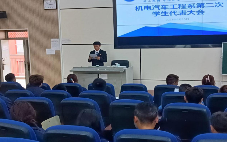 2023年6月15日,畢節(jié)工業(yè)職業(yè)技術(shù)學院機電汽車工程系第二次學生代表大會在括海學院二樓會議室召開。第一階段,到會的領(lǐng)導及嘉賓一同奏唱國歌,機電工程系負責人張建為大會致開幕詞,院團委負責人伍紹平老師宣讀了團委批復,系部黨總支張禾書記宣讀黨總支批復,宣讀完畢后到會領(lǐng)導及嘉賓進行了合影留戀。