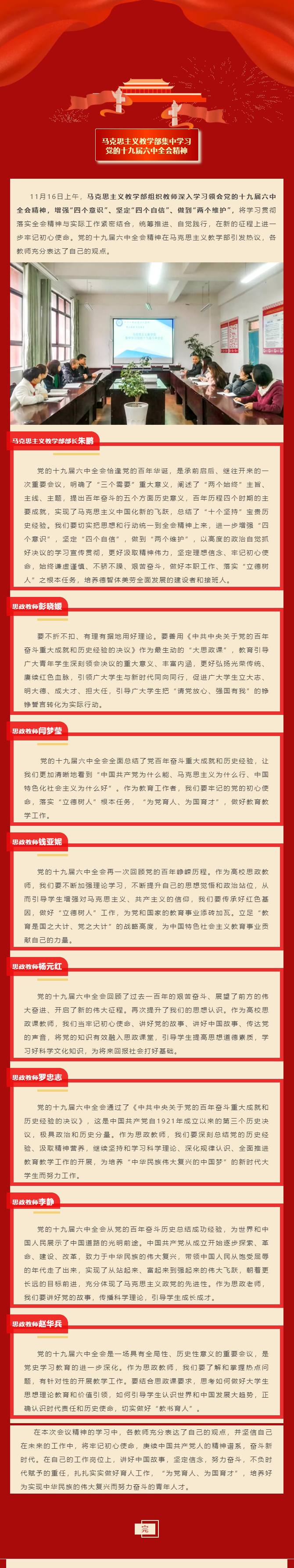 馬克思主義教學(xué)部集中學(xué)習(xí)黨的十九屆六中全會精神