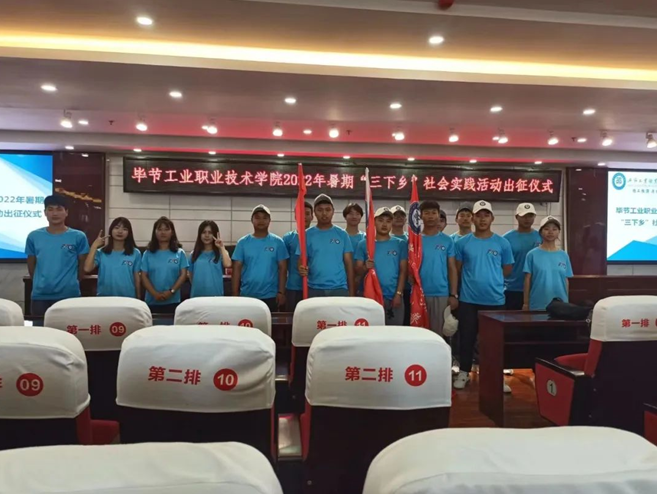 2022年7月4日,畢節(jié)工業(yè)職業(yè)技術(shù)學(xué)院土木工程系“三下鄉(xiāng)”出征儀式在同心大樓9樓會(huì)議室舉行。儀式由學(xué)院黨委副書記、院長邱國援為實(shí)踐隊(duì)授旗,黨委委員、副院長黃文碧宣布出征,黨委委員、宣傳部部長余斌發(fā)表講話。土木工程系老師、領(lǐng)隊(duì)老師、實(shí)踐隊(duì)學(xué)生參加此次出征儀式。