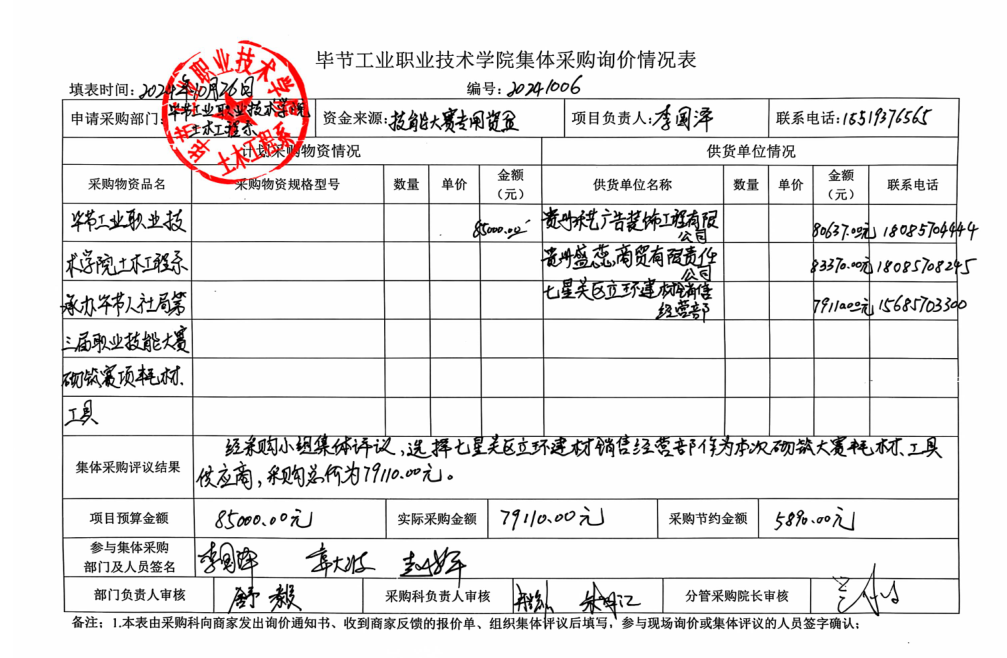 土木工程系承辦畢節(jié)市人社局第三屆職業(yè)技能大賽砌筑賽項(xiàng)耗材、工具詢價(jià)情況公告