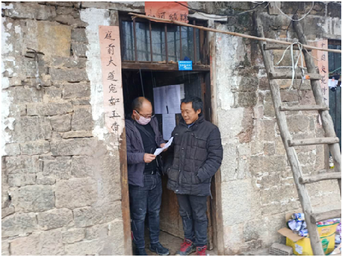 疫情就是命令,防控就是責(zé)任。1月26日正月初二,當(dāng)大家還恐慌于新型冠狀病毒肺炎感染數(shù)字的不斷增加時,我院駐赫章縣營上社區(qū)、瓦瑤村、青山村 “駐村干部”李澤文、劉家寧、趙澤龍就急忙趕回所駐村,積極主動投身到戰(zhàn)“疫”一線。