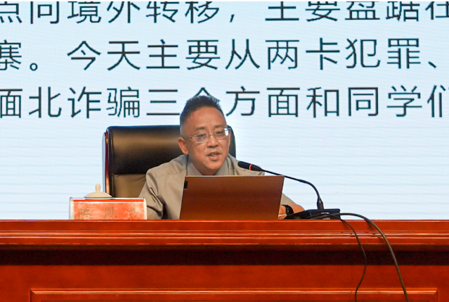 6月13日,畢節(jié)市人民檢察院黨組副書記、常務(wù)副檢察長、三級高級檢察官、畢節(jié)工業(yè)職業(yè)技術(shù)學(xué)院法治副校長陳恩志到我院開展“檢校同心 反詐同行——防范電信網(wǎng)絡(luò)詐騙”專題講座,講座由學(xué)院黨委委員、副院長黃河主持,300余名師生代表到場聆聽。