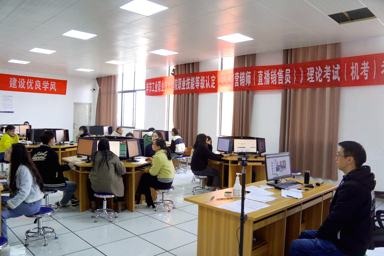 為了促進我院“雙師型”隊伍建設(shè),提升教師技能成長,弘揚工匠精神,經(jīng)貴州省職業(yè)技能鑒定指導(dǎo)中心批準(zhǔn),我院2023年第二批職業(yè)技能等級認(rèn)定考試--《直播銷售員》(三、四級)考試工作圓滿完成。