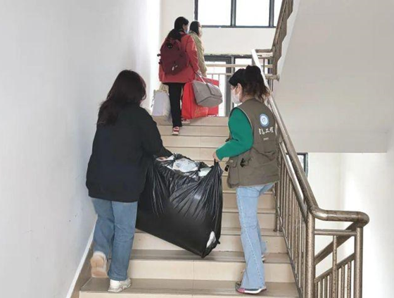 數(shù)名志愿者堅守在校園各個點位