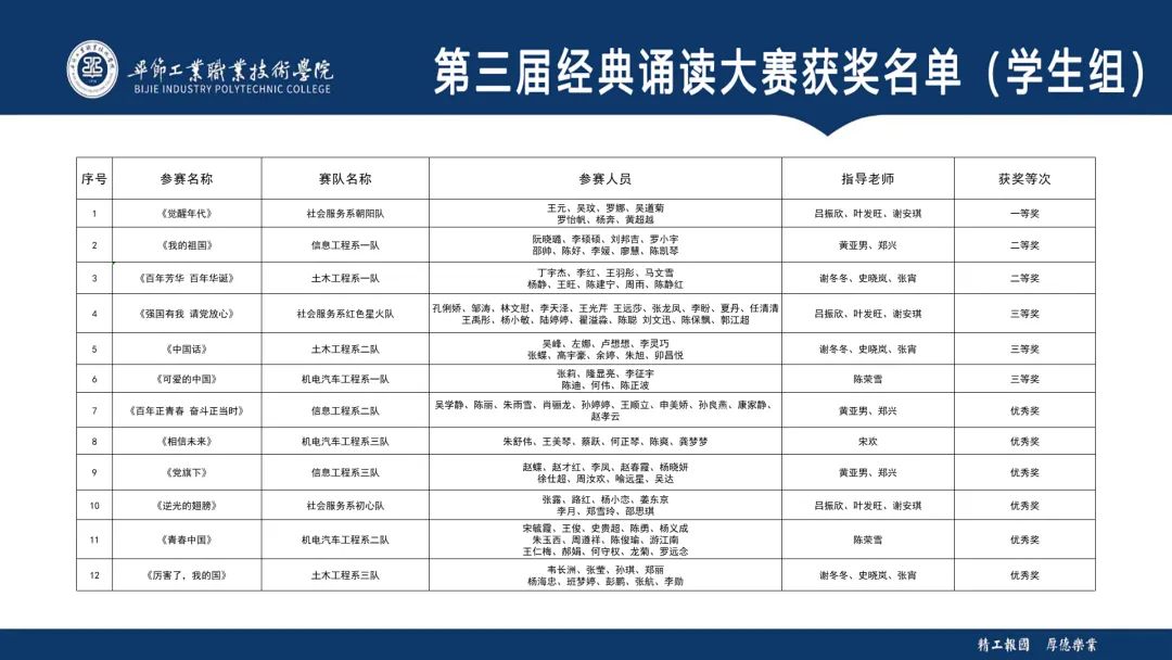 6月21-22日,畢節(jié)工業(yè)職業(yè)技術(shù)學(xué)院在會(huì)議中心舉辦了主題為“喜迎二十大 · 永遠(yuǎn)跟黨走 · 奮進(jìn)新征程”的第三屆經(jīng)典誦讀活動(dòng)。