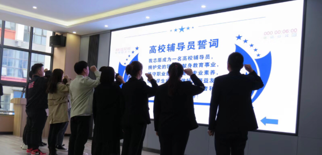 儀式上,全體輔導員對照“高校輔導員誓詞”進行宣誓;黨委委員、副院長黃文碧對本次大賽進行致辭;致辭結(jié)束,黨委委員、學院副書記付善華宣布大賽正式開始。
