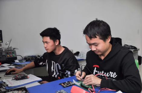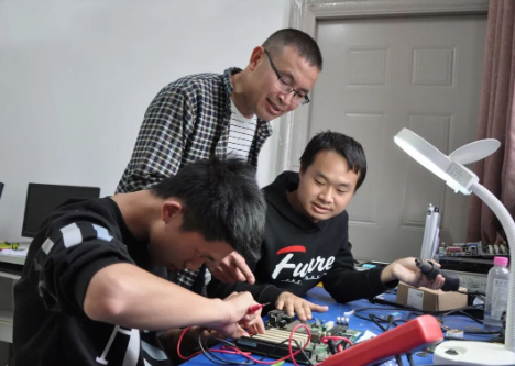 (楊建(左)宋洪宇(右)在實(shí)訓(xùn)室認(rèn)真?zhèn)滟悾?/span>