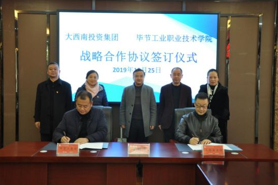 智慧共生,合作共贏。為深入貫徹《國家職業(yè)教育改革實(shí)施方案》,加強(qiáng)校企合作、人才培養(yǎng)和培訓(xùn),2019年12月25日,畢節(jié)工業(yè)職業(yè)技術(shù)學(xué)院與大西南投資集團(tuán)有限責(zé)任公司校企合作戰(zhàn)略協(xié)議簽訂儀式在學(xué)院同心樓三樓會(huì)議室正式舉行。