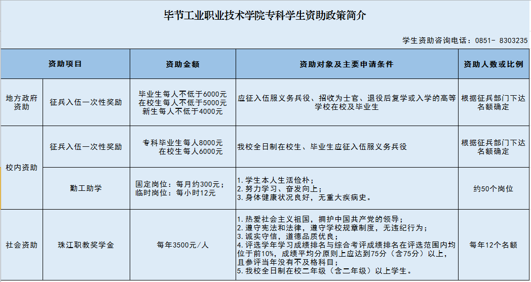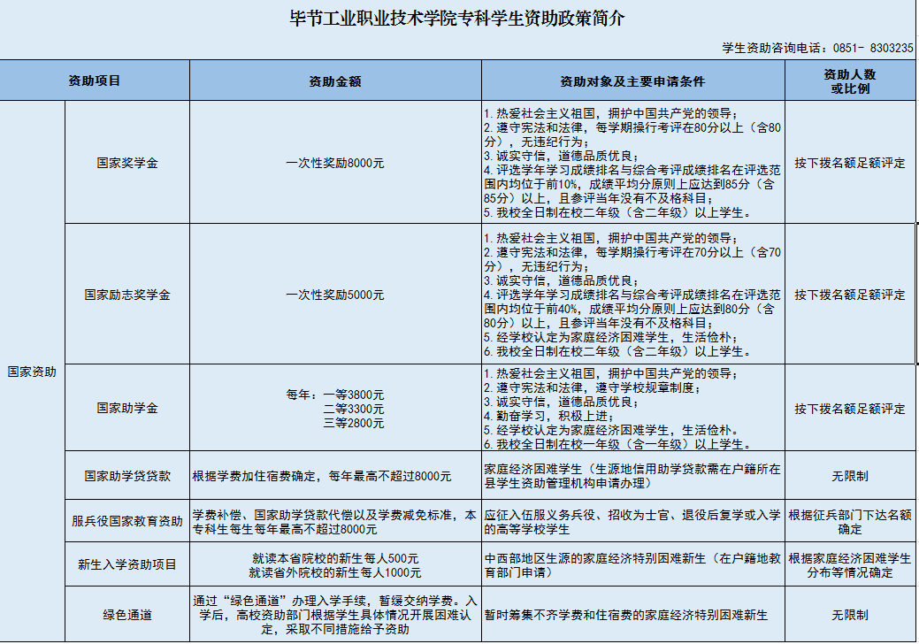 畢節(jié)工業(yè)職業(yè)技術(shù)學(xué)院專科學(xué)生資助政策簡介
