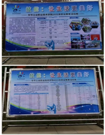 為了營造職業(yè)教育活動周氛圍,讓職業(yè)教育精神深入學生心中,我院制作了系列宣傳展板,緊扣職教活動 “技能:讓生活更美好” 宣傳主題,大力宣傳和展示我院學生2021年參加貴州省職業(yè)技能大賽獲獎學生風采。并結合各專業(yè)特點及國家職業(yè)技能標準、職業(yè)技能鑒定和考核相關要求,為即將開展的學院首屆學生職業(yè)技能大賽做好宣傳動員工作,從而鼓勵廣大學生努力學習,練就專業(yè)技能。